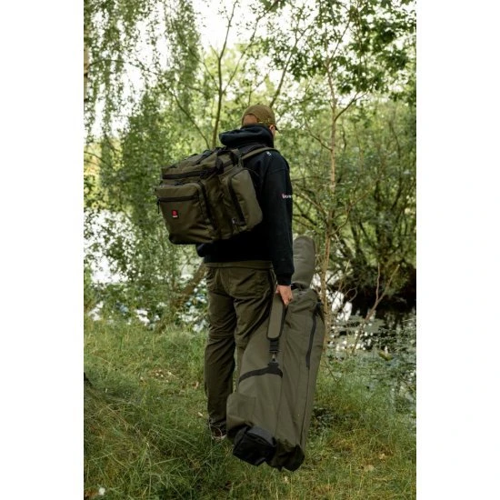 - Große Außentaschen für Kescher, Wiegeschlingen und anderes Zubehör