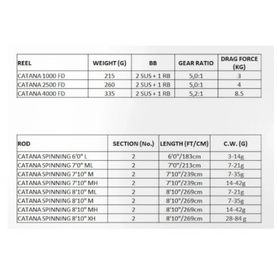 - Rute: Shimano Sienna Spinning 8’10“MH
