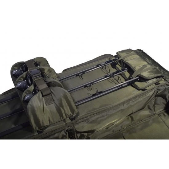 Sonik stellt das ultimative 3-Rod-Transportsystem vor. Passgenau für drei 44 oder 50 Zoll einziehbare Karpfenruten. Durch das intelligente anpassbare Design passen Ruten mit unterschiedlichen Grifflängen in das System. Wenn Sie die Stangen auf den inneren ausklappbaren Abschnitt legen, haben Sie schnellen Zugriff auf Ihre Ausrüstung in den drei abnehmbaren Taschen, die sich perfekt unter Ihrer Liege verstauen lassen. Das Transportsystem kann zur einfachen Aufbewahrung zusammengeklappt werden und besteht aus ultra-robustem 600D SK-TEK-Tarnmaterial mit PVC-Rückseite und einem wasserdichten HD-Grundmaterial. Auf der Oberseite befinden sich außerdem zwei Kompressionsriemen für weiteres Zubehör und die Tragegurte ermöglichen die Verwendung des Systems als Rucksack.