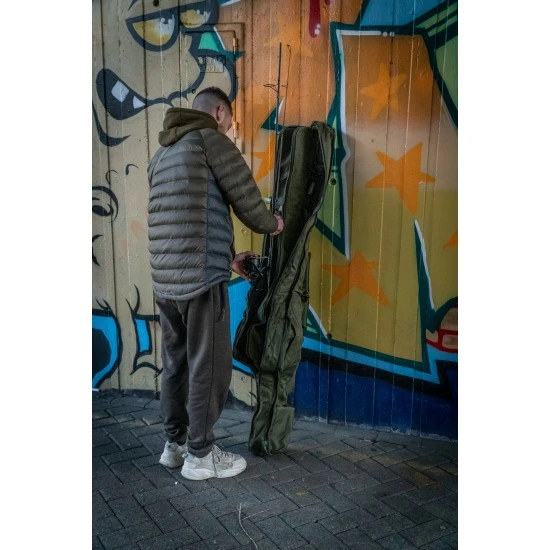 De 3 rod padded sleeve is een stevig, gewatteerd foudraal dat plaats bied aan 3 opgetuigde hengels met 50mm start ogen met molens.